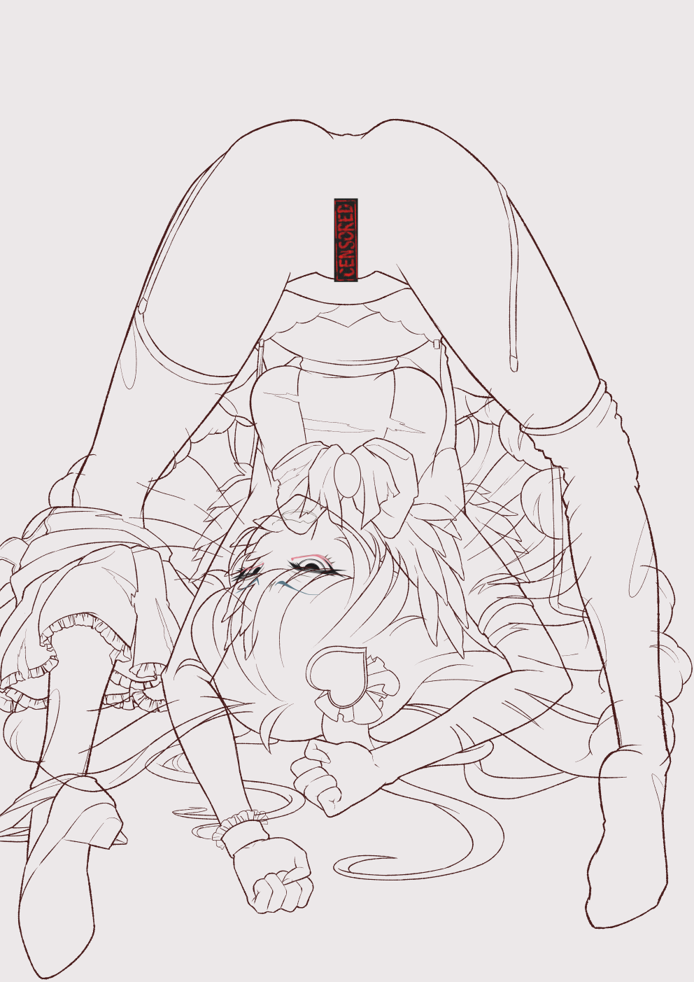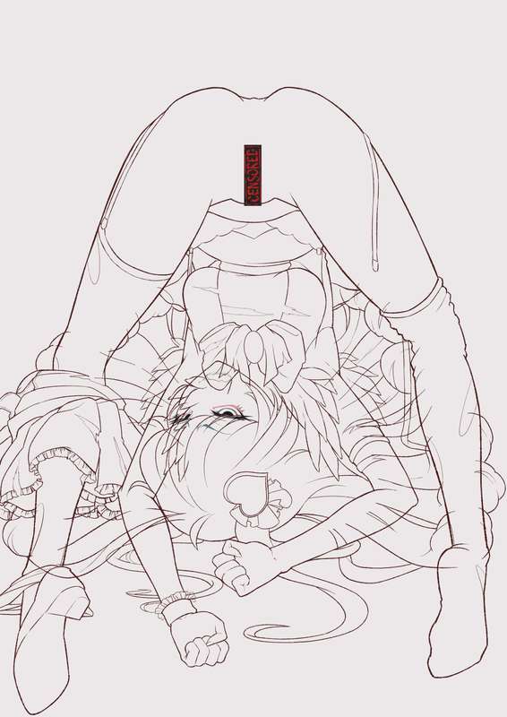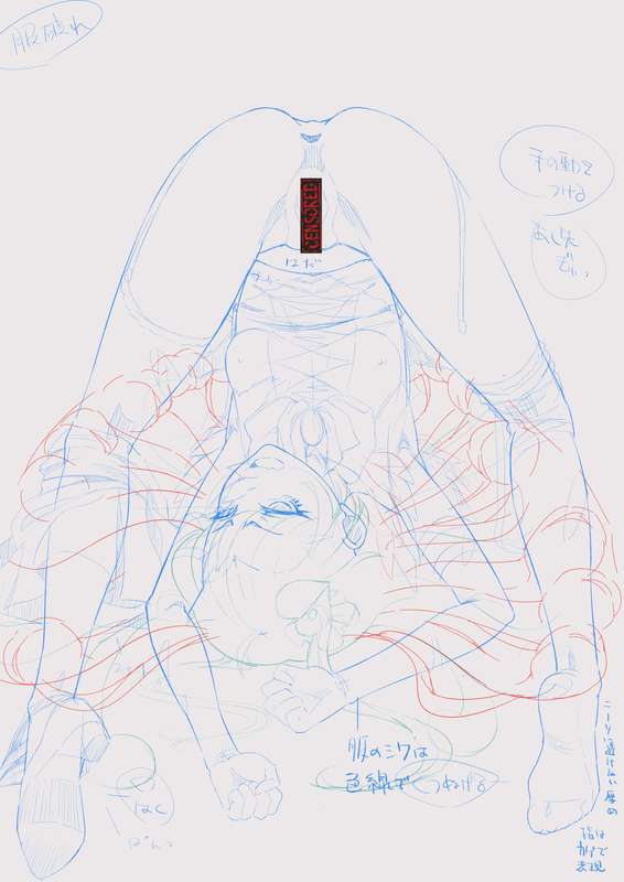 下描きの髪の毛が赤いのは差分でも絶対に動かない箇所としての目印です
