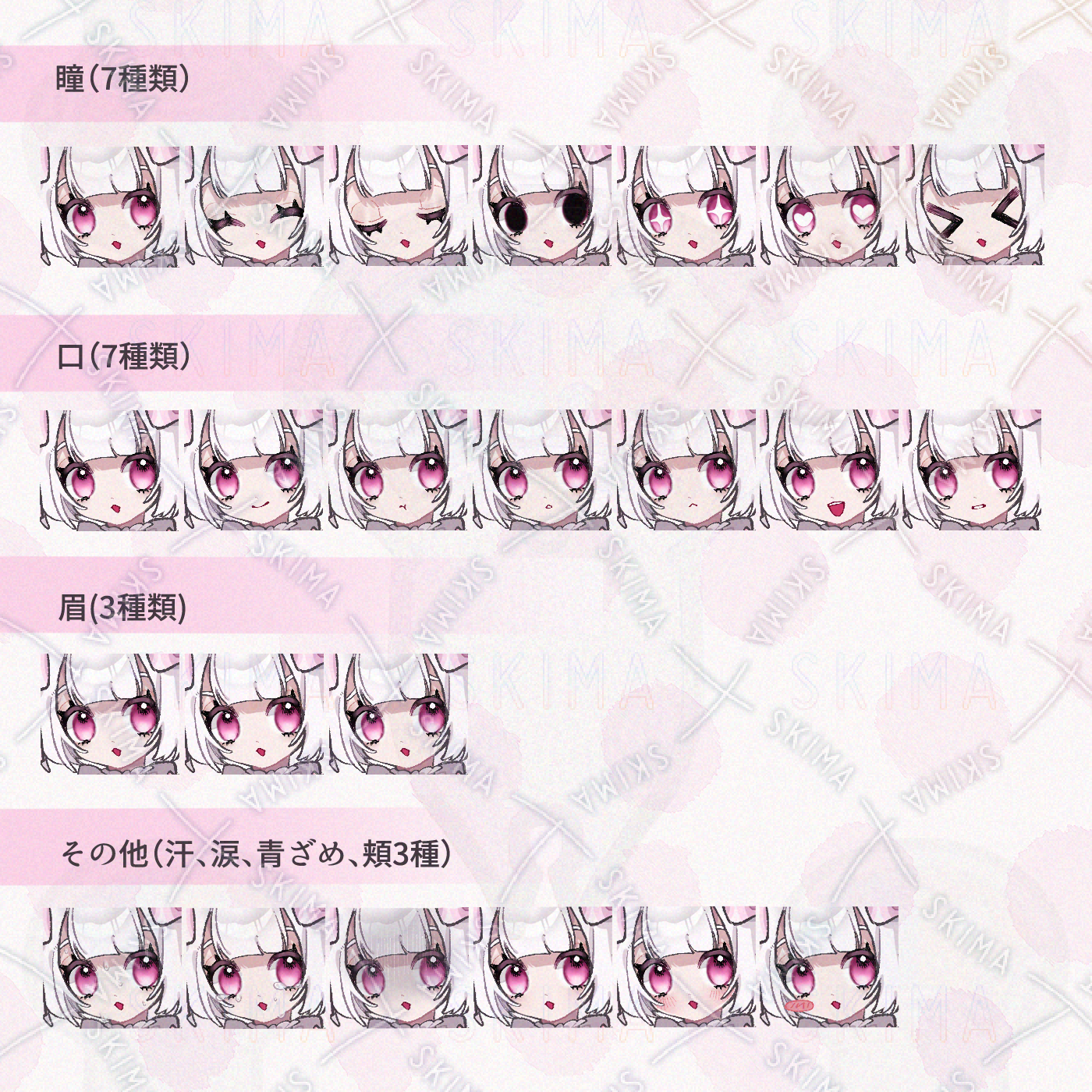 その他:汗、涙、青ざめ、頬3種類