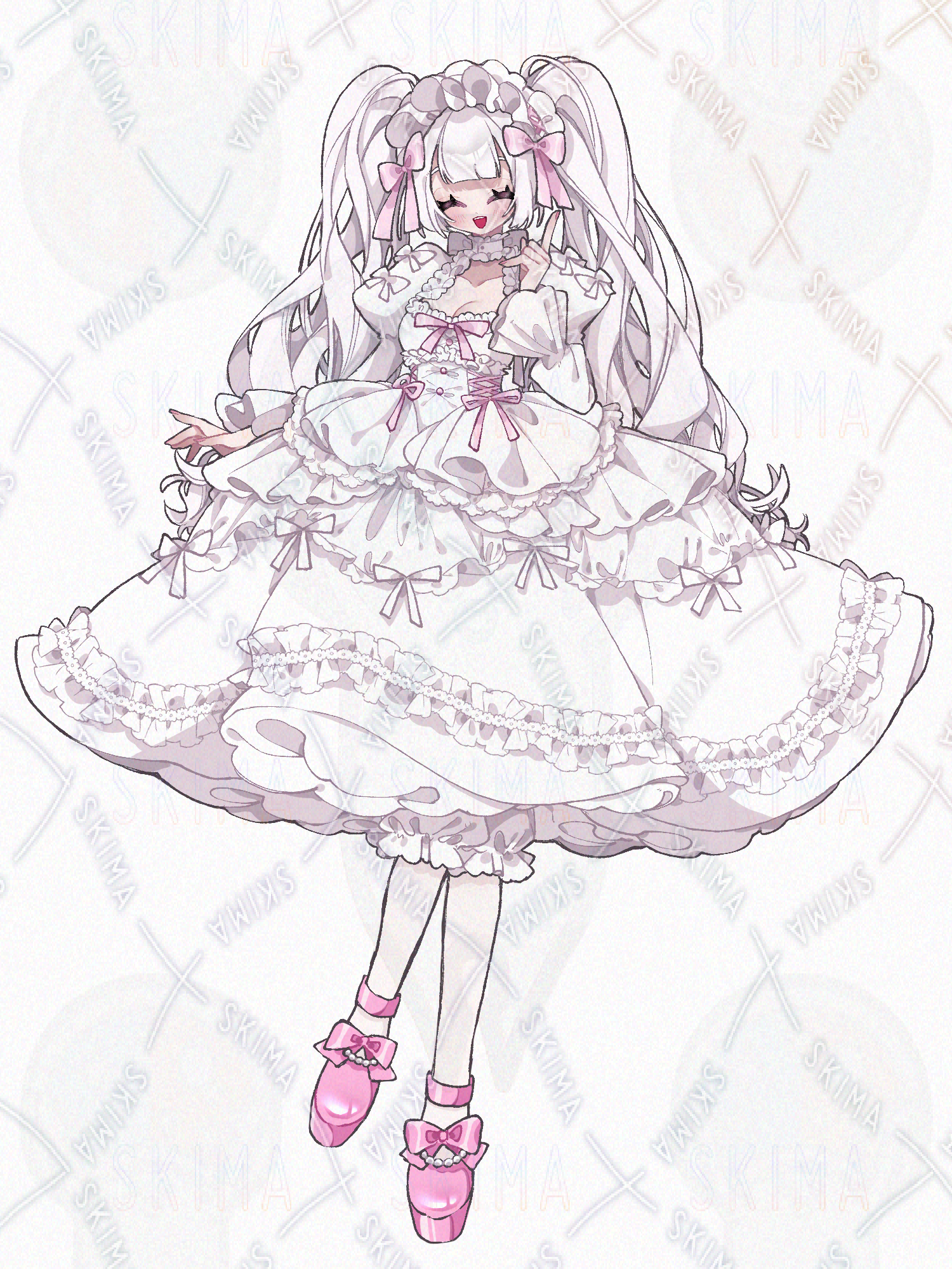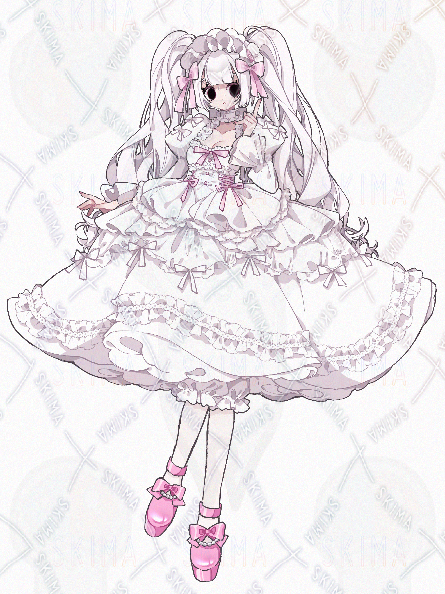 色々な用途で使えるフリルとリボンがたっぷりの真っ白なロリータドレスの全身立ち絵です。