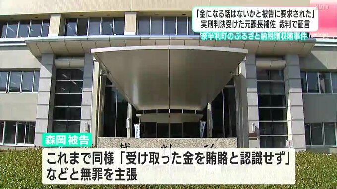 高知県奈半利町のふるさと納税をめぐる贈収賄事件で、一審で受託収賄罪が無罪となり、二審で審理が差し戻された元課長のやり直しの裁判が開かれ、すでに実刑判決を受けた元課長補佐が「被告から『金になる話はないか』と要求された」と証言しました。