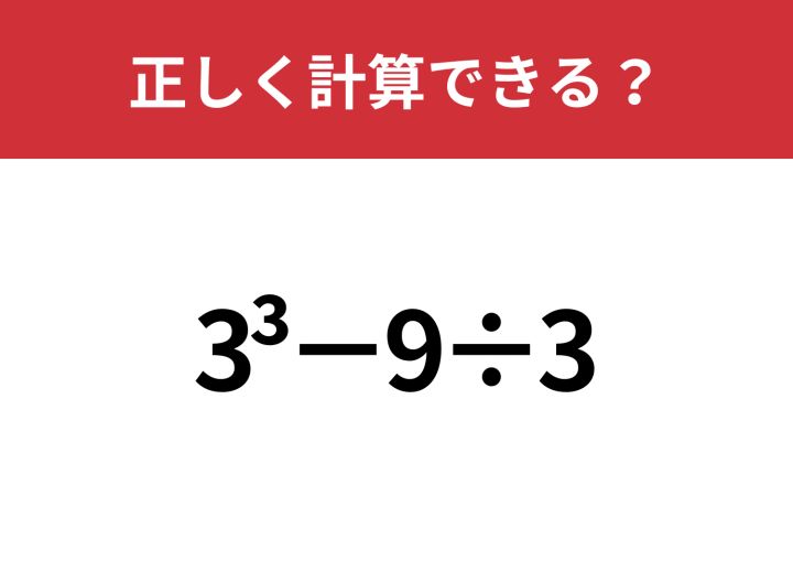 「3^3−9÷3」正しく計算できる?