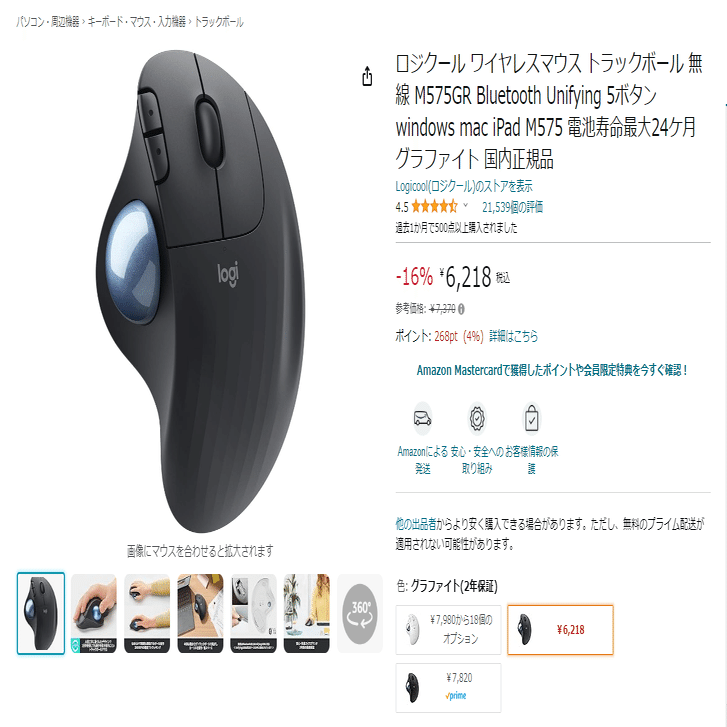 そして、トラックボールマウスの超有名どころであるLogicool製品に行き着いたというわけです。