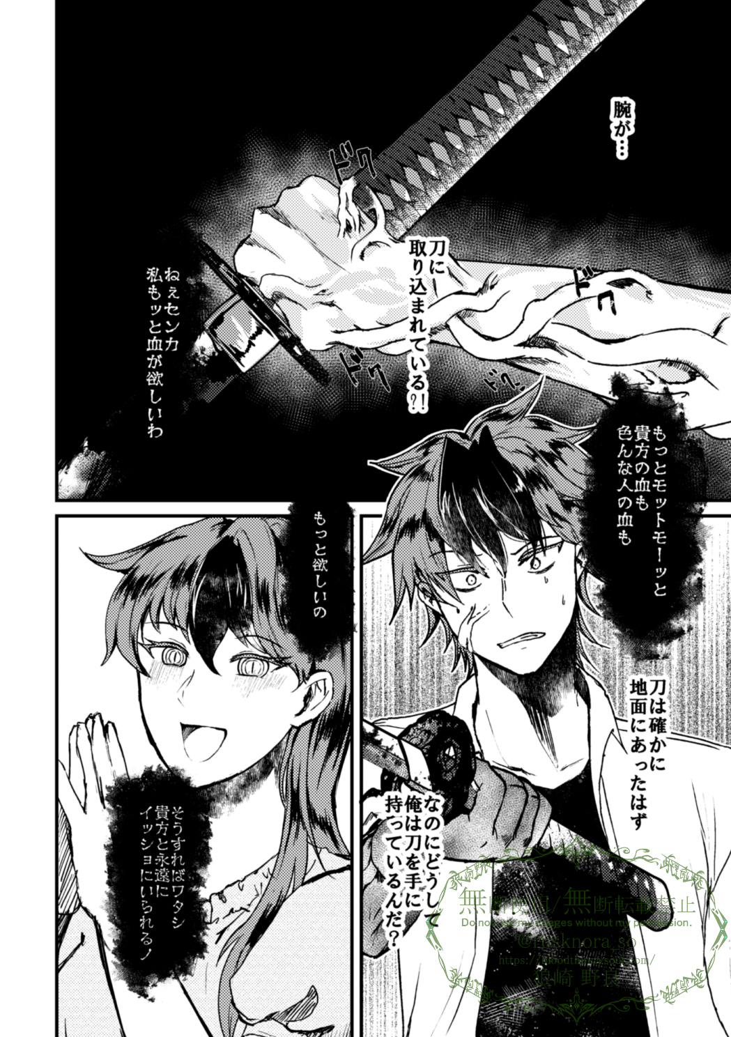 昨日ファンボックスでも語り倒したけど 妖刀に取り込まれたセンカは分類的には魔物化で 妖刀に幻覚見せられてる体で描いた漫画だけど 妹を想う兄の気持ちと 妖刀による願いを叶えると言われてる力の影響で妹の魂が妖刀に宿り しかし血を吸い過ぎた妖刀に宿ってしまったせいで→