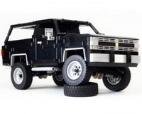 The RIVER RAIDER is based on a 80s Chevy Blazer/Ford Bronco 4x4 and has a flip roof under which big guns are hidden. To be very little it also has steering on both axles.