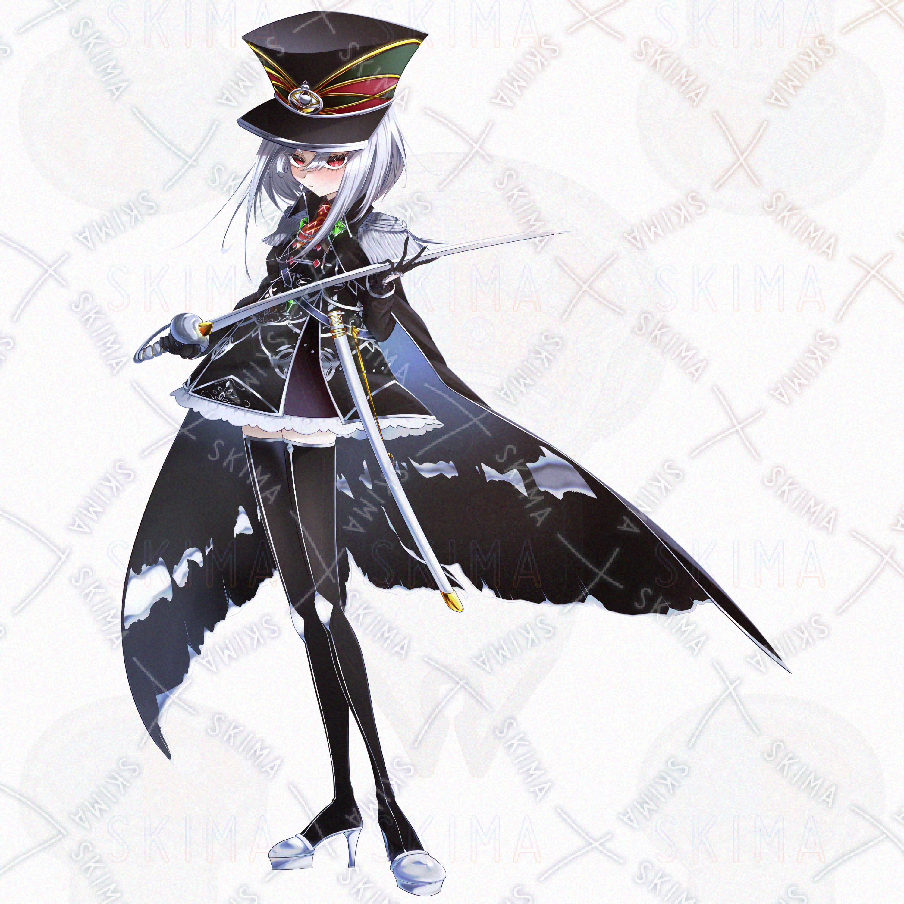 女の子/銀髪/ミニスカ/ニーハイソックスブーツ/軍服/ちょうちょ