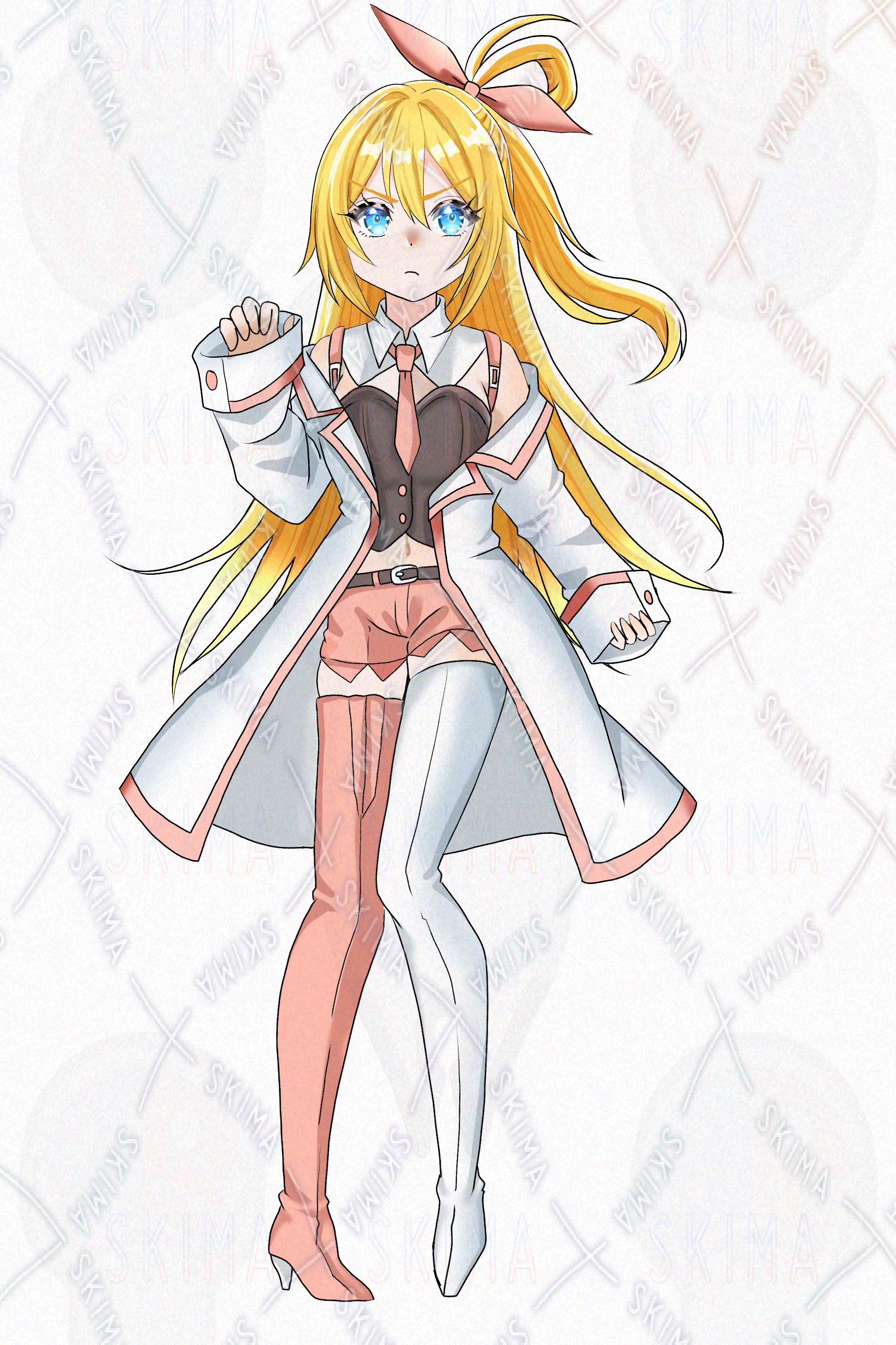 TRPG立ち絵/魔法少女/金髪ロング/サイドテール/リボン/ピンク系イラスト