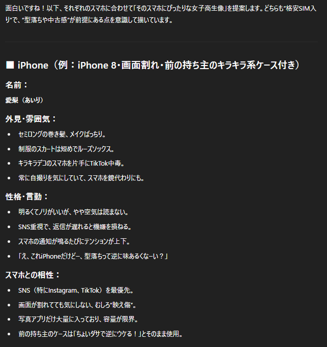 違うだろ……ぴぴけくん……! 君が欲しいのはAndroidかiPhoneかの回答じゃなく……! 「安い中古のスマホにデコデコしたカバーをつけて格安SIM突っ込んで動かしてるやつ」じゃあないのかい……! え、違う? 違ったらごめんだぜ。