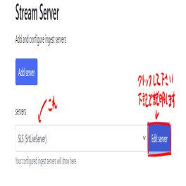 次にSLS(SrtLiveSever)の右隣のEdit Severを選び新たにオプションが開きますので