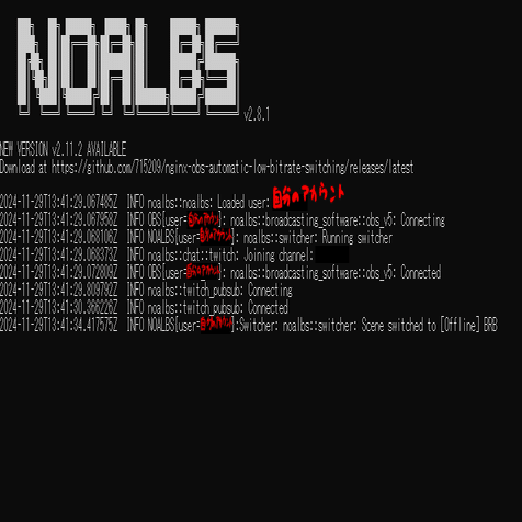 NOALBS(NodeCG OBS Automatic Live Broadcasting System)は、OBS Studioの自動制御ツールです。主にTwitchの配信管理を効率化するために使われます。