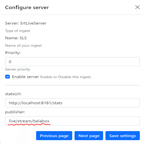 publisherのフォームに"live/stream/belabox"と入力。