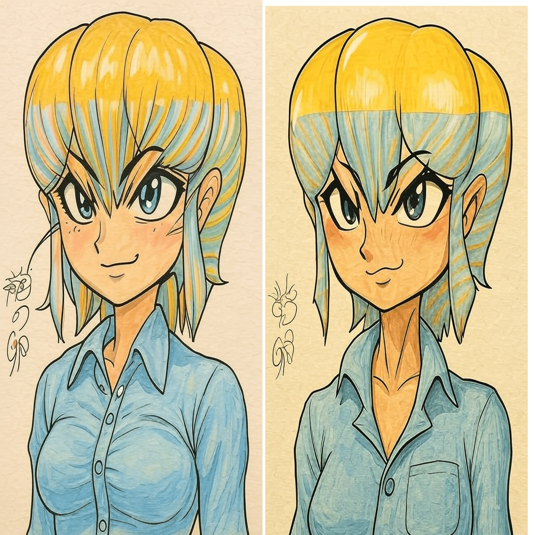 そして、下塗りから着色(左が元、右が変換後)