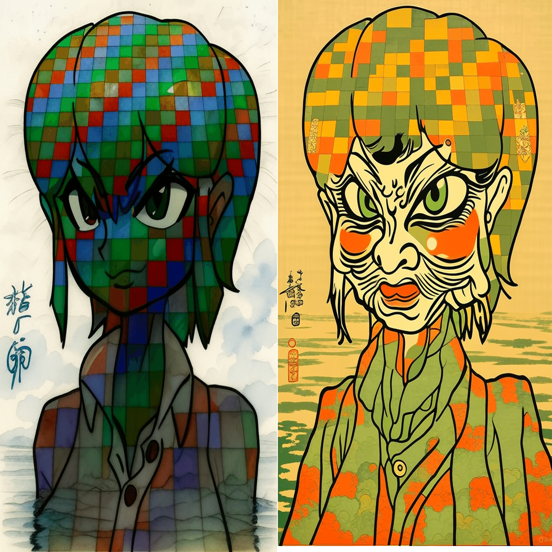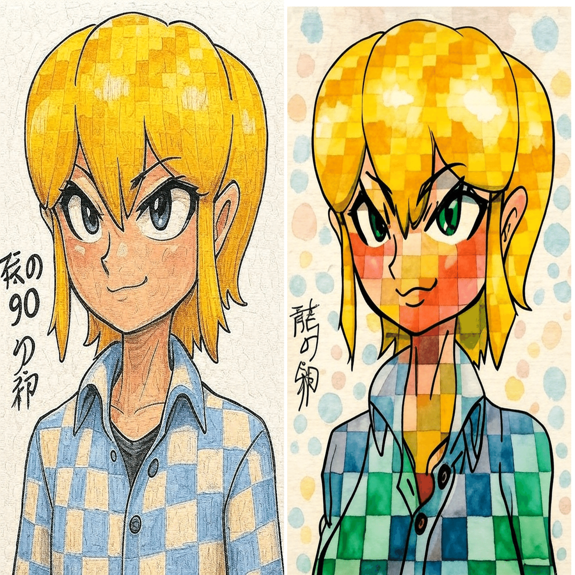 写真から漫画調に変換するのを妨害できるかの実験です。実験結果は以下の通りです。(左が元、右が変換後)