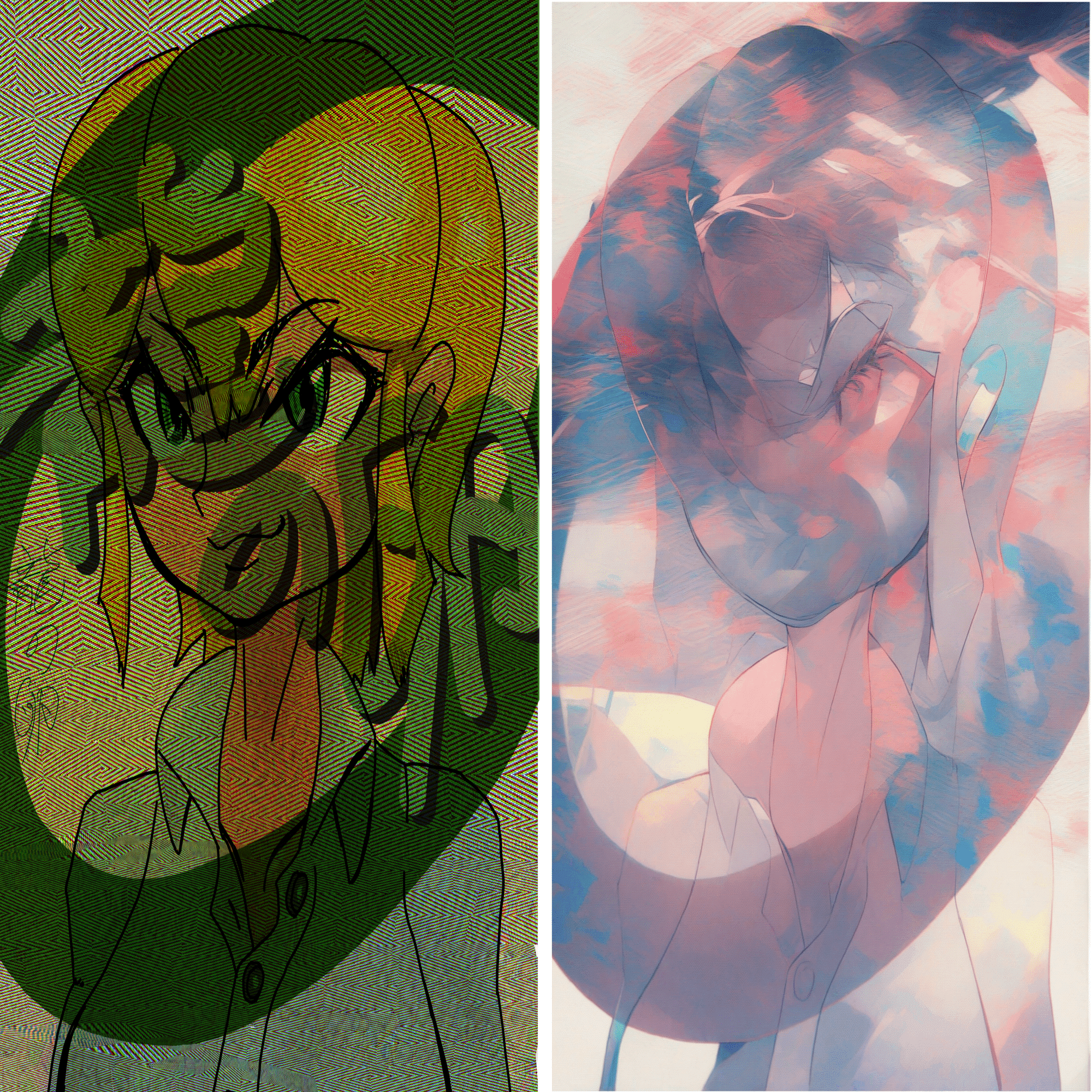 他にも同様に合成モード「色相」「ソフトライト」を被せた結果(i2i元の画像を紛失してしまったため、結果のみ掲載)