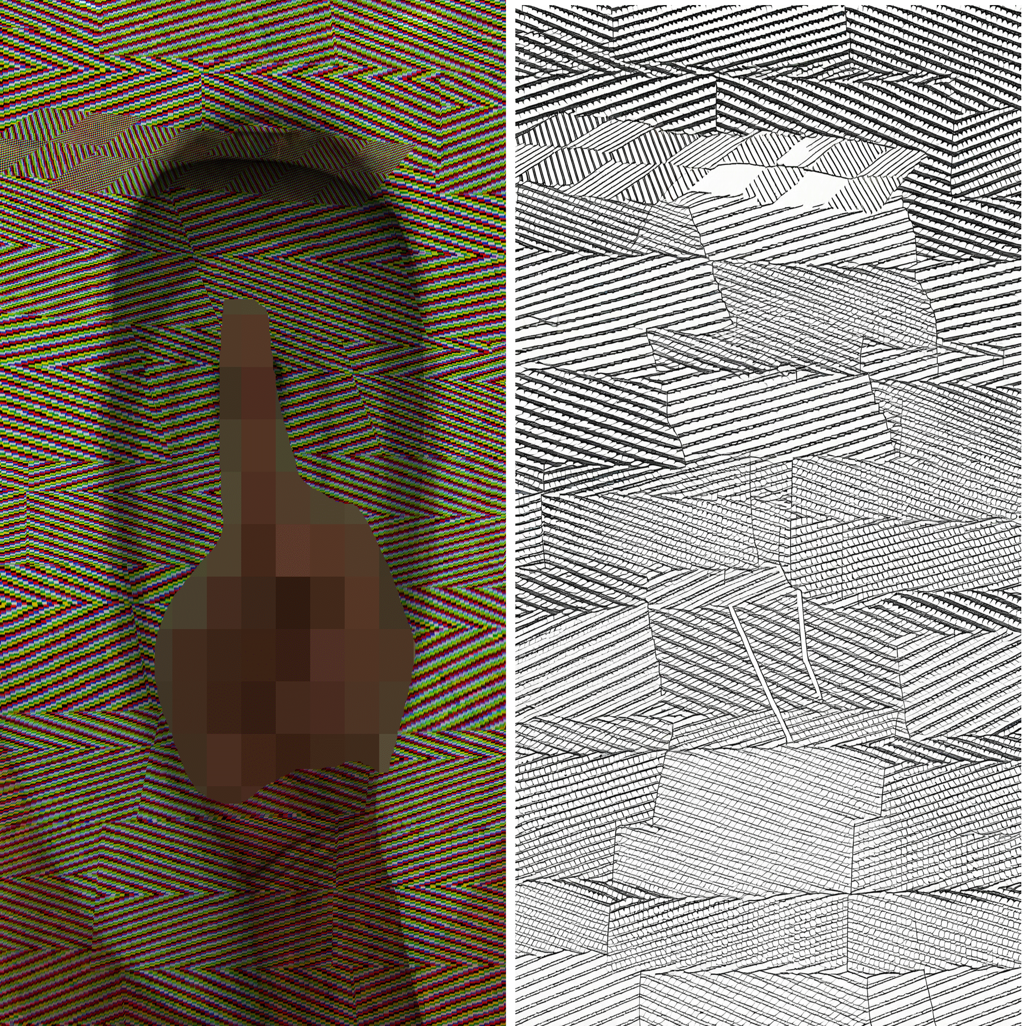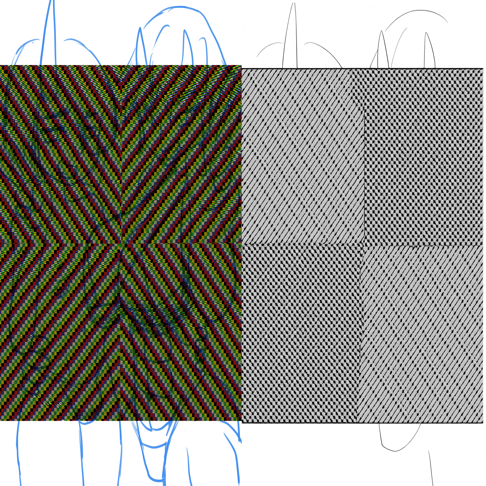 同じNSGフィルタでも柄の目の粗いの物の方が画像変換に強く、柄の目の細かい物は単体だと、配色を乱雑にさせる事は出来ても、致命的な破綻を引き起こす事は難しいようです。追加でウォーターマークを大きく被せる事で破綻を招く事が可能となるようです。