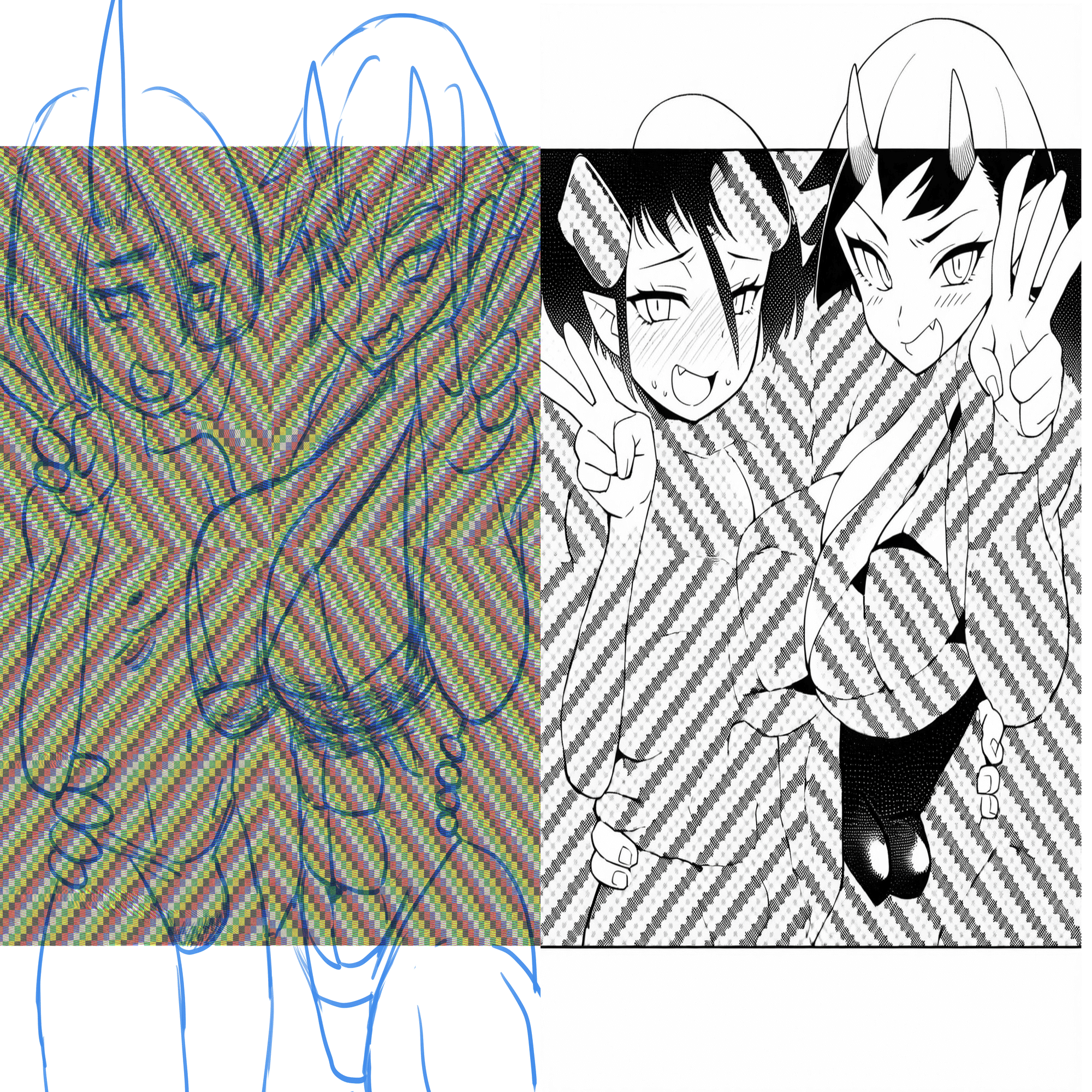 まずは下書きから線画(左が元、右が変換後)