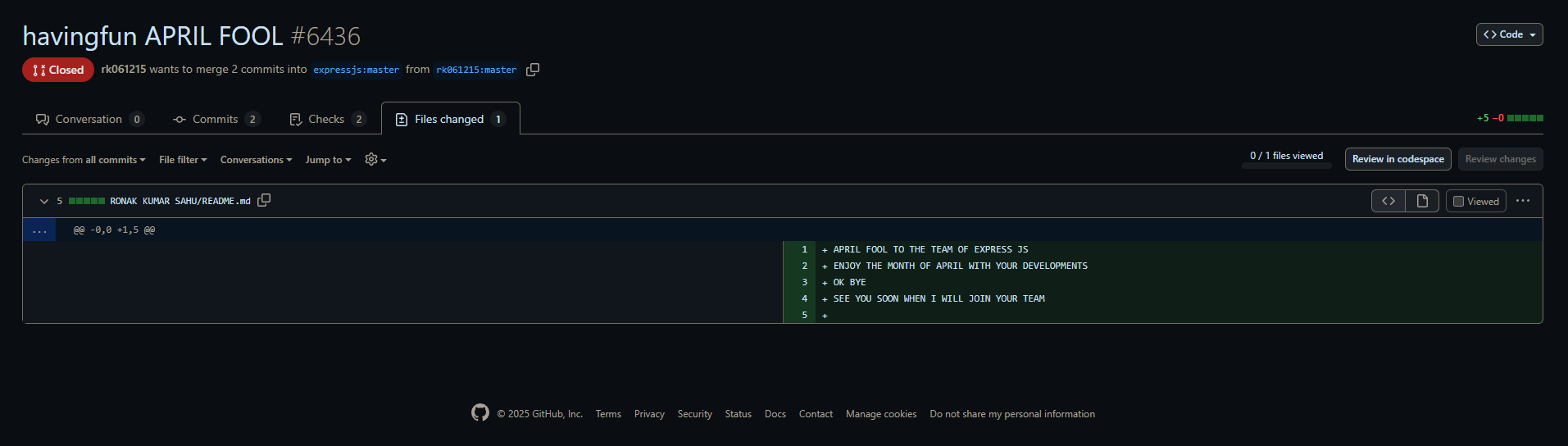 HAPPY APRIL FOOL TO THE EXPRESSJS TEAM!!!