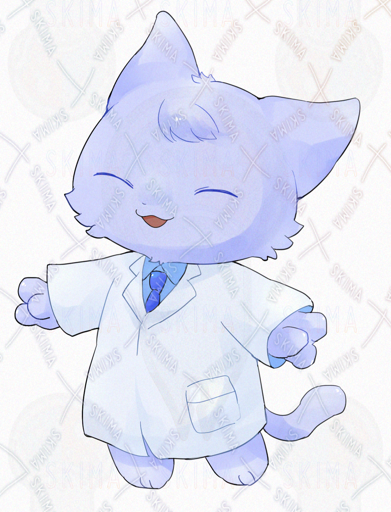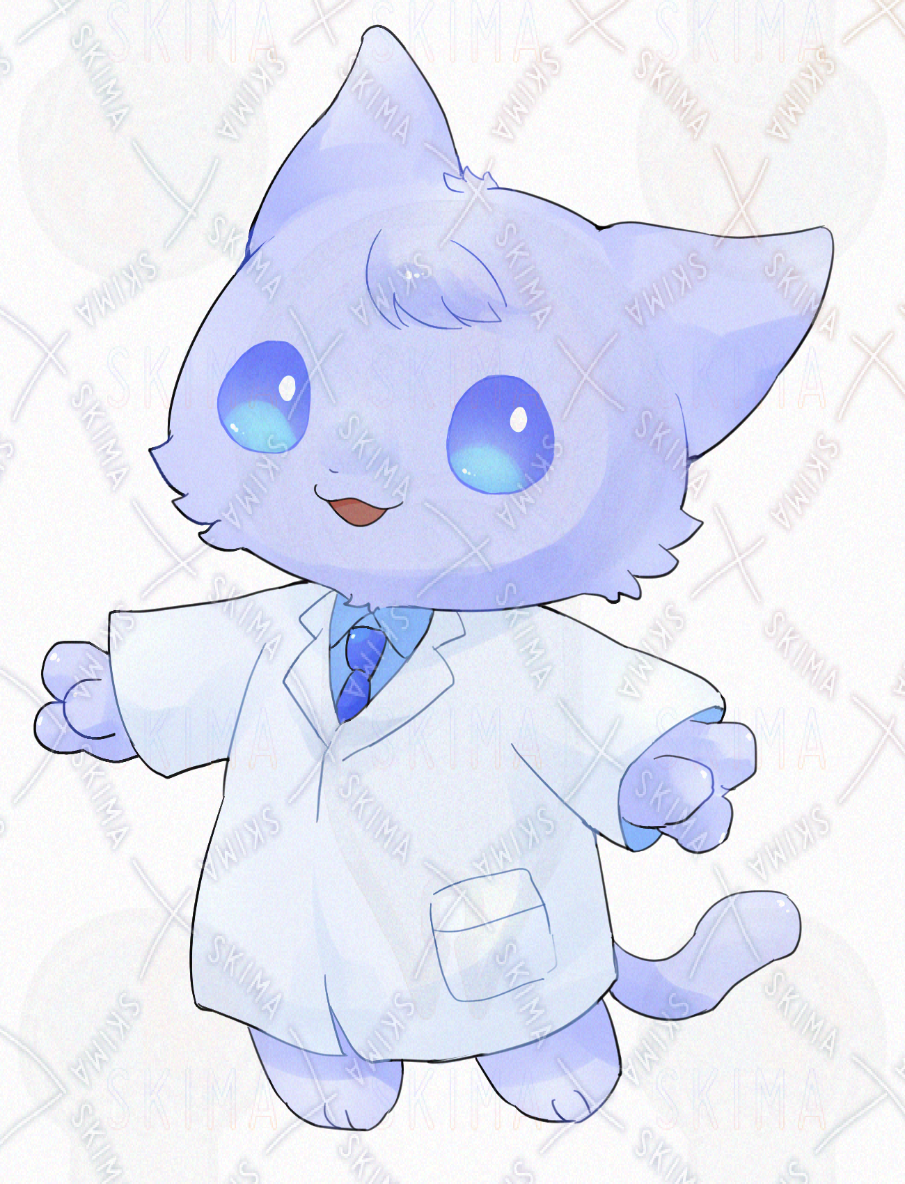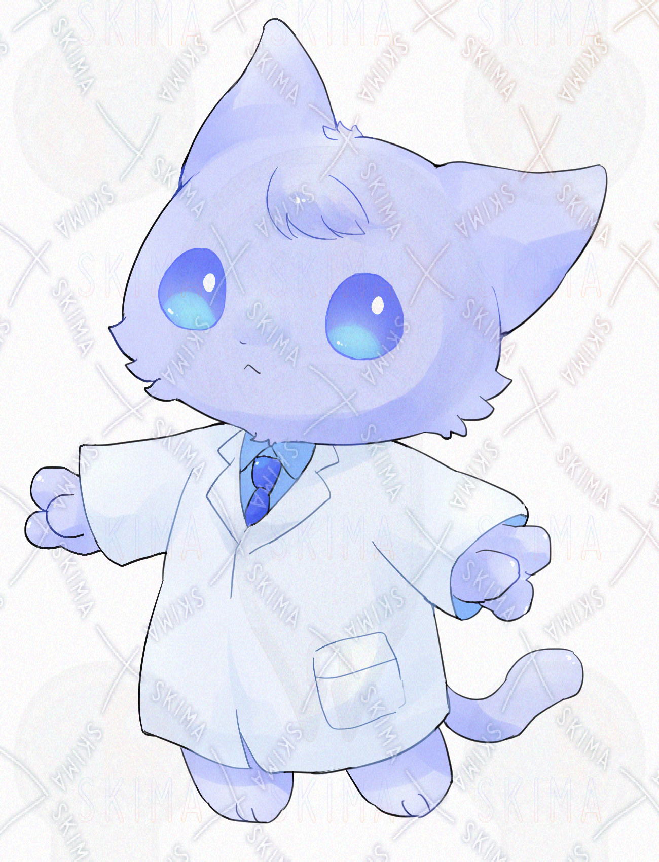 白衣を着た猫の立ち絵になります。