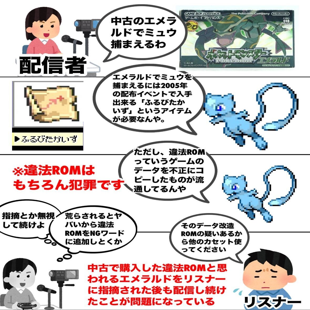 このたび、兎田ぺこらの配信内で使用された『ポケモン エメラルド』のROMに改造、違法疑惑が浮上している件につき、… pic.twitter.com/adVqMGU0j6