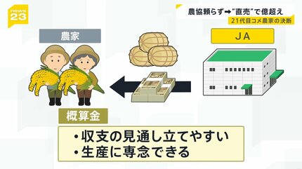 農家は米を刈り取る前に、農協から概算金を受け取れるため、収支の見通しが立てやすく、生産に専念できるといった利点があります。