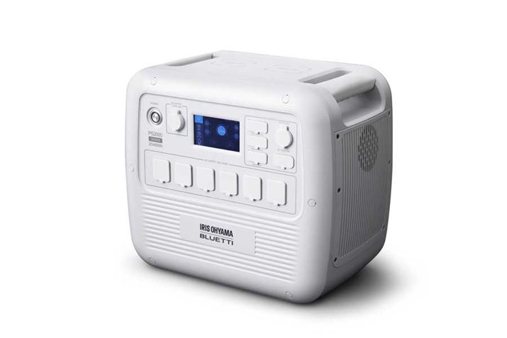 ポータブル電源専業のブルーティパワーとの共同開発で生まれた大容量モデル。バッテリー容量が約2,048Whの大容量モデルのため、災害や停電時などにも活躍します。ワイヤレス充電に対応したスマートフォンは、本体上部に置くだけで充電が可能。USBポートやACコンセントなど6種13か所の出力端子を備え、数多くのデバイスに給電できます。内蔵のリン酸鉄リチウムイオンバッテリーは、一般的なリチウムイオンバッテリーと比べて約3~5倍長寿命(充電サイクル数2,500回以上)。大型の液晶画面を備えており、バッテリー残量や入出力電力のほか、バッテリー残量低下表示や温度異常警告、過負荷警告、出力ショート警告などが表示されます。