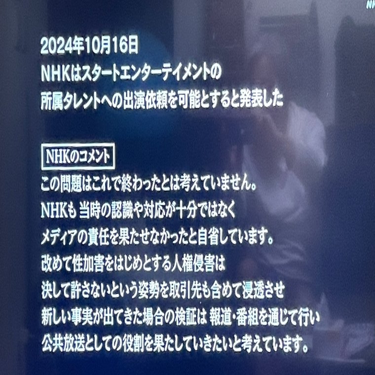 私はテレビ局とジャニー氏性加害の問題は放送されるたびに追ってきて、すべて録画してある。民放のものも含めてもっともメディアの責任に迫ったのが2023年9月11日放送のNHKクローズアップ現代「“ジャニーズ性加害”とメディア 被害にどう向き合うのか」だった。いまも放送と同一の内容をテキストで読むことができる。NHKと民放の当時の関係者40人に取材し、ジャニー氏の性加害をなぜメディアが見過ごしてきたのかをレポートした。大変いい番組だったと思う。