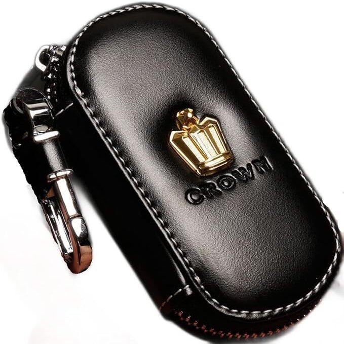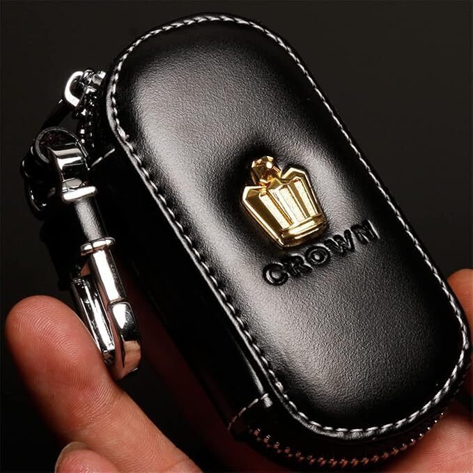 クラウン CROWN トヨタ TOYOTA スマートキーケース キーカバー キーホルダー 高級PUレザー製 (黒)