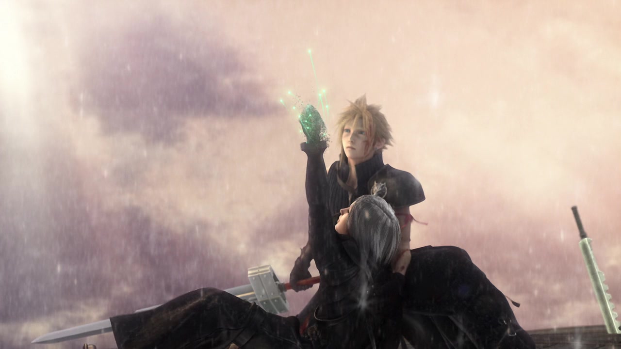 In a key art for Advent Children (see gallery), Cloud is holding Kadaj's wounded body as he did Aerith's in Final Fantasy VII.