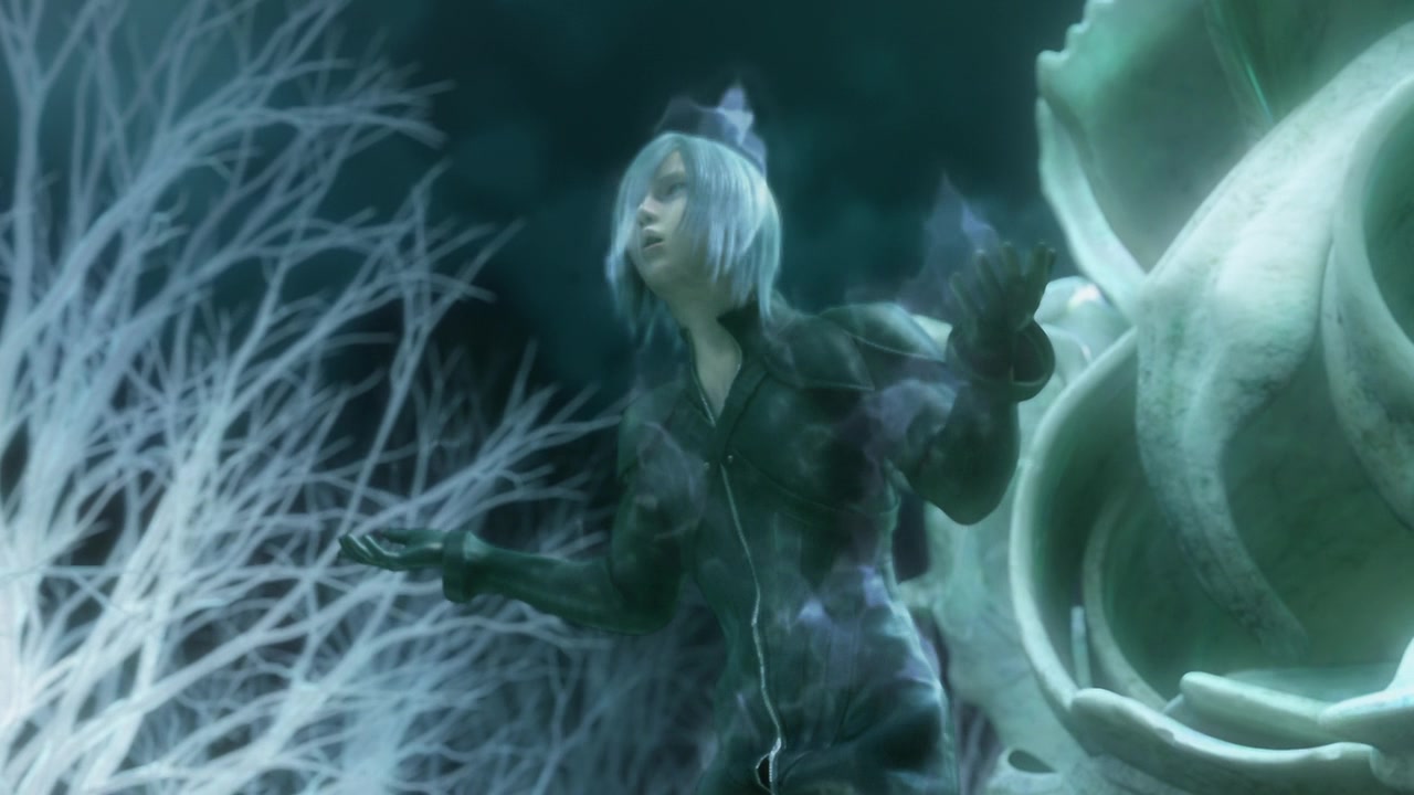 Kadaj then attempted to manipulate Kyrie into supplying him information on Jenova's remains, but Kyrie, having been warned by Tseng not to trust Kadaj from their previous encounter, shot at him. Angered, Kadaj conjured forth his sword and threatened to kill her and Evan, burning down Icicle Inn while pursuing them. When the Turks arrived to help the duo, Kadaj jumped abroad their helicopter and attacked them, tricking it into downing itself with a missile. He goaded Kyrie into going into one of the crevasses and pursued them in the caverns, where they found a Jenova's shriveled, mummified arm. Recognizing the still-living remains of his "Mother", Kadaj attempted to recover it, but Evan kicked into it the lifestream. Kadaj dove after it and dissolved into the lifestream, but not before vowing to return to the physical realm.