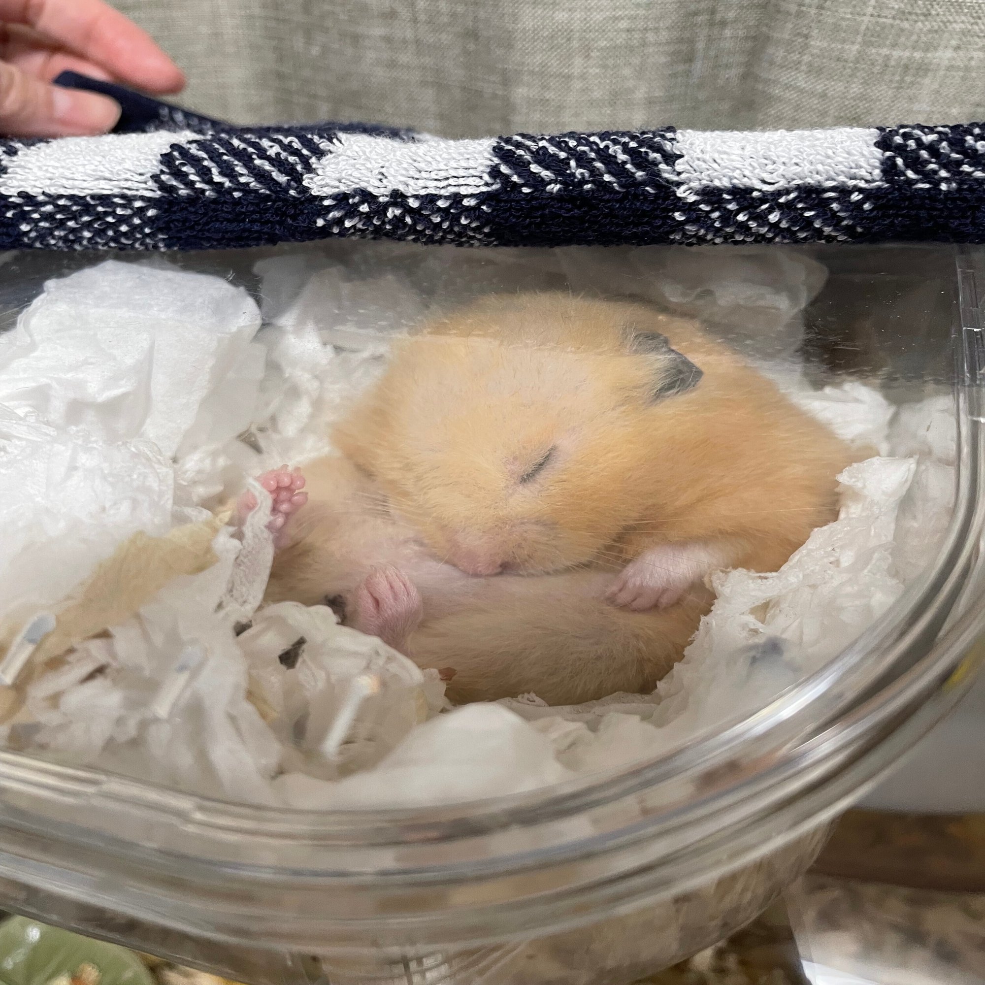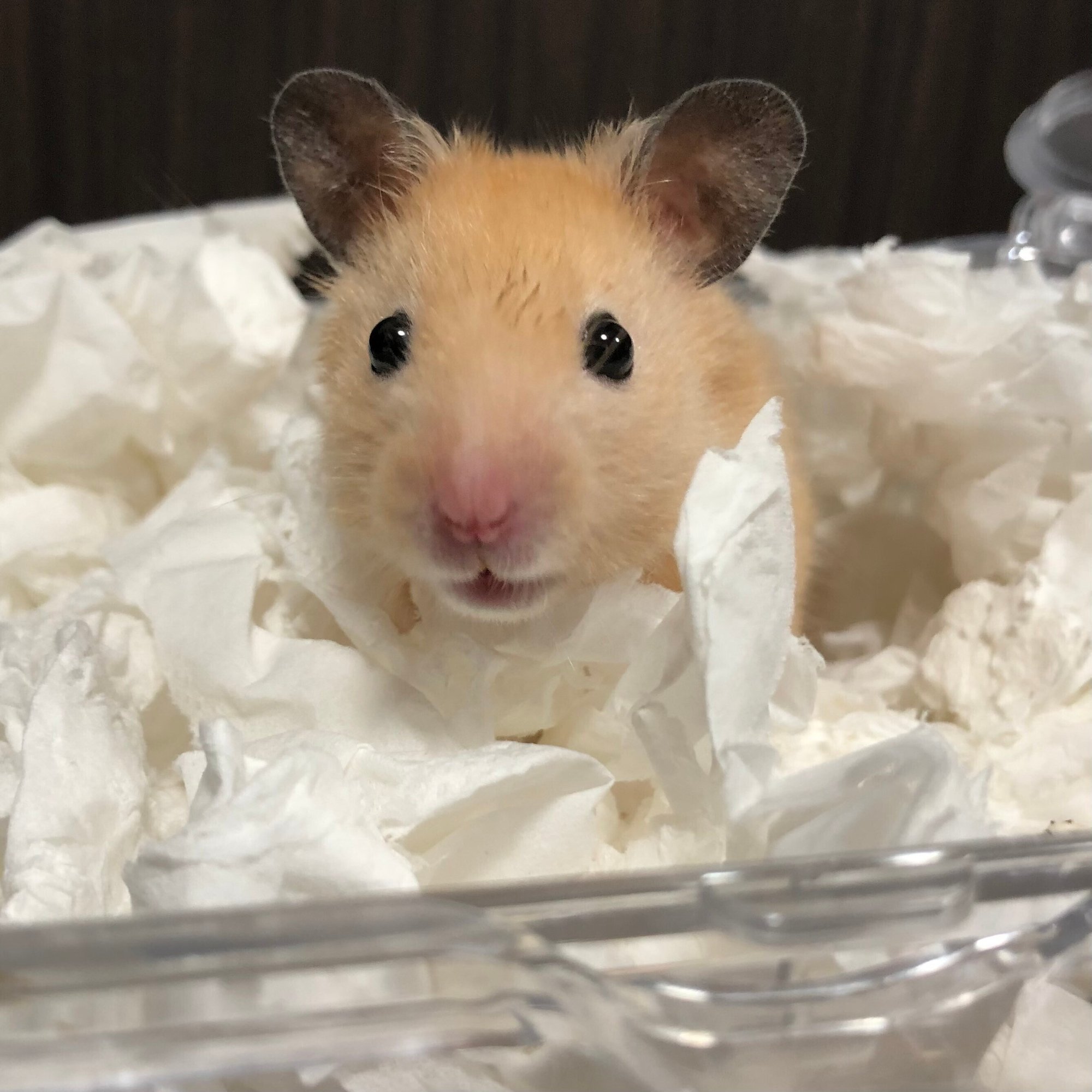 スケスケで、日中は明るく、さぞ落ち着かんだろうと思うのだが、本人全く気にしていない。ハムスターは目が悪いので、明るさは気にならないらしい。狭いとそれだけで落ち着くようだ。