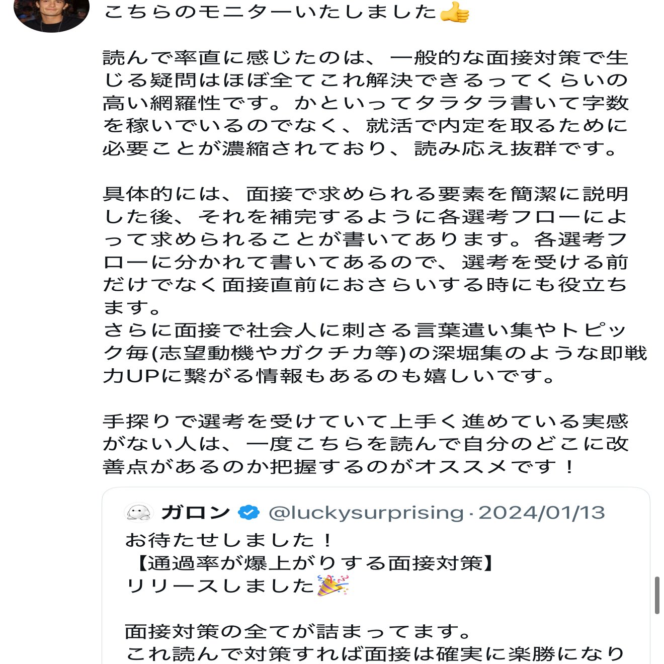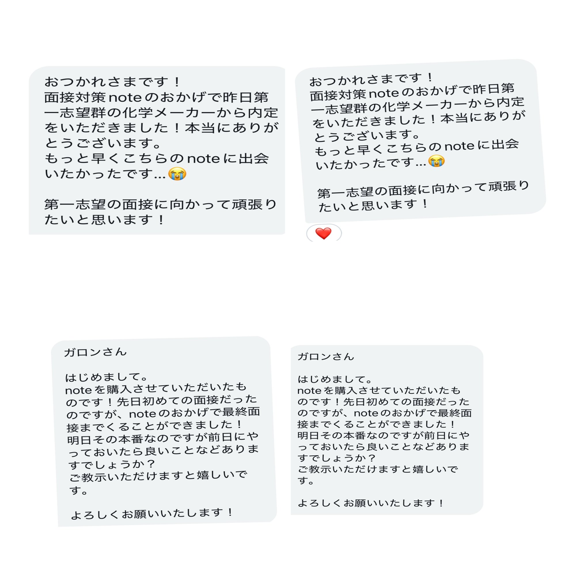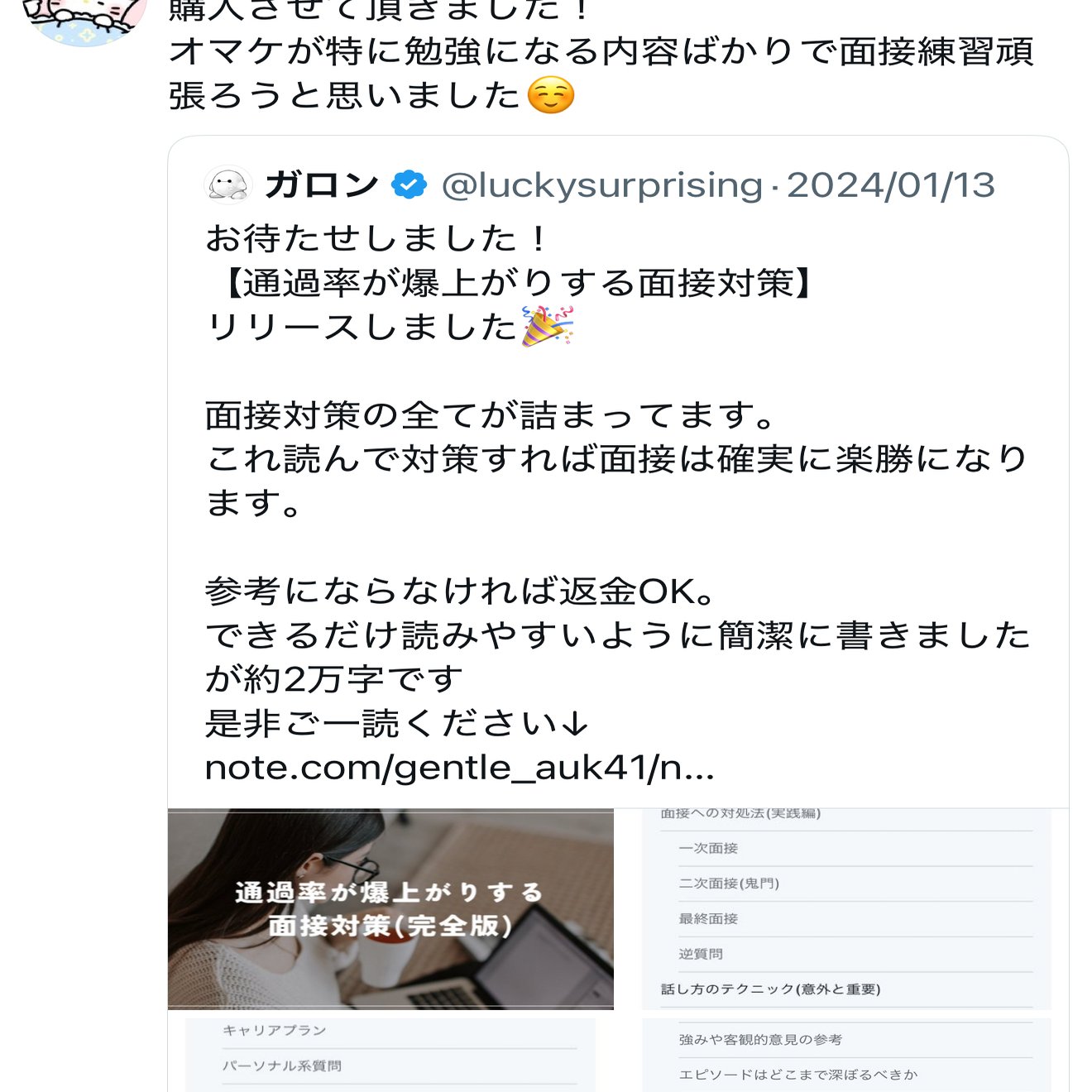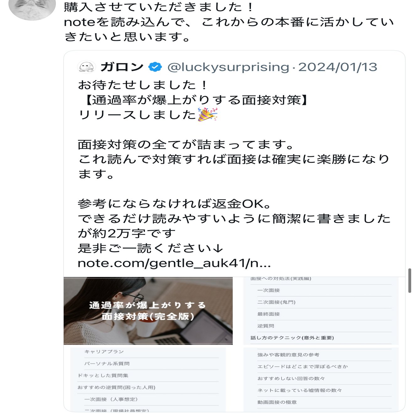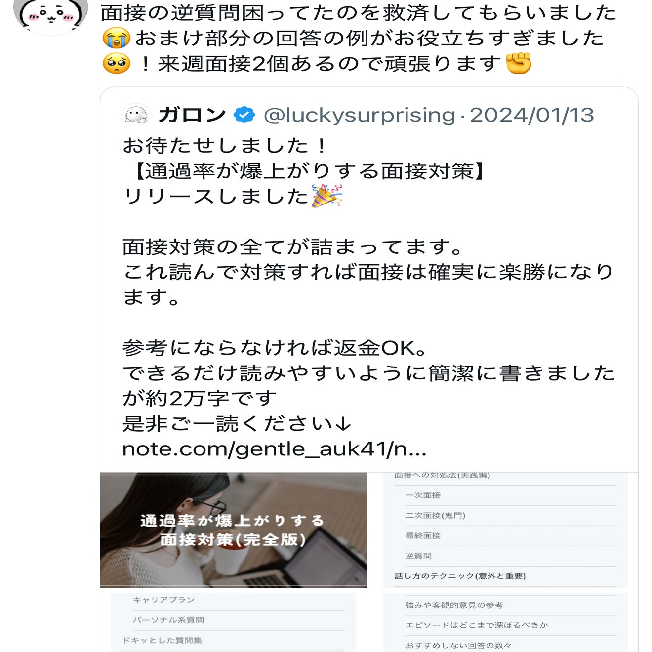 とはいえ、以前の面接対策noteを購入いただいた方には無料で本記事をプレゼントいたしますので、希望がありましたら購入時期とユーザーネームだけご教示いただけますと幸いです。(DMでお願いいたします)