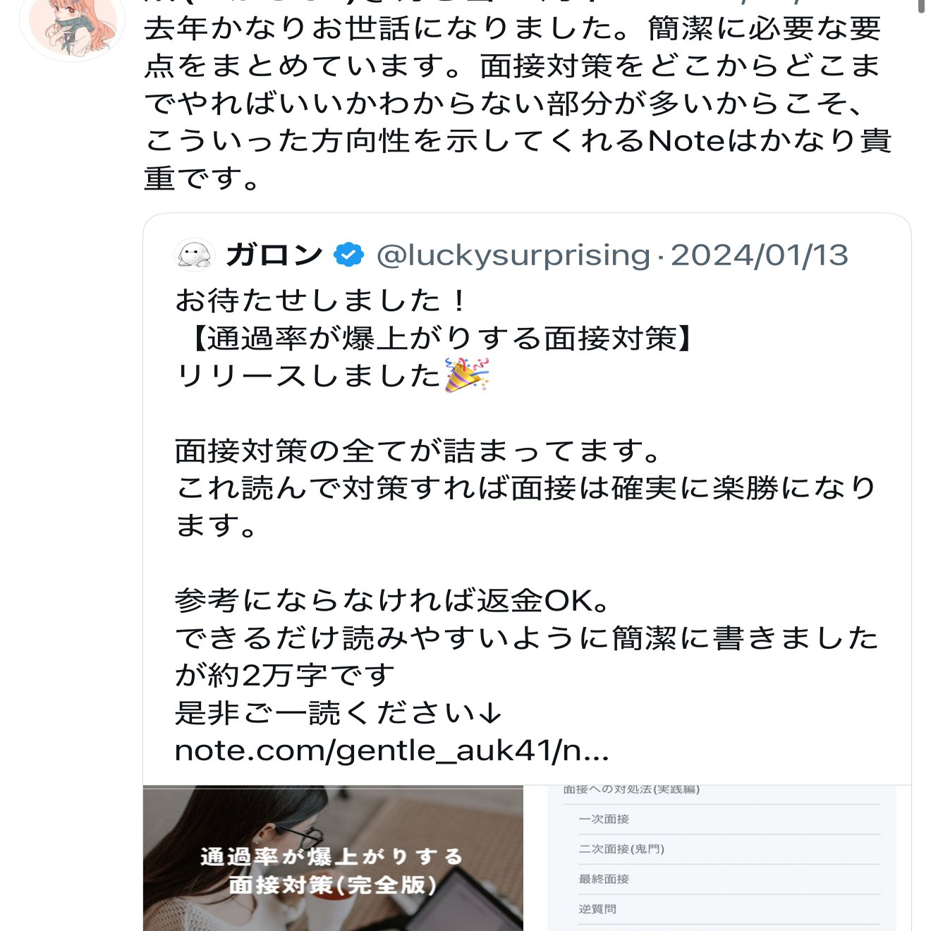 実は面接対策のnoteを以前に作成したことがあります。