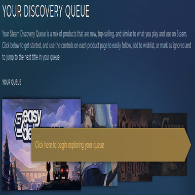 ライブラリ(持っているゲーム)に基づいてDiscovery Queueでゲームが推薦されます。