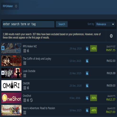 さらに、特定ジャンルのゲームを見つけるためストアタグでSteamを検索することもあります。