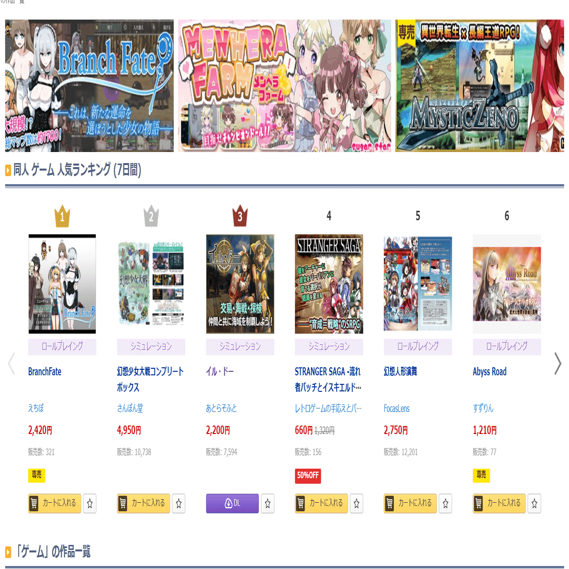 Steamに少し似ていますが、完全に日本文化圏のコンテンツだらけです。もし、日本的なゲームが好きならDLSiteは訪れるべきです。