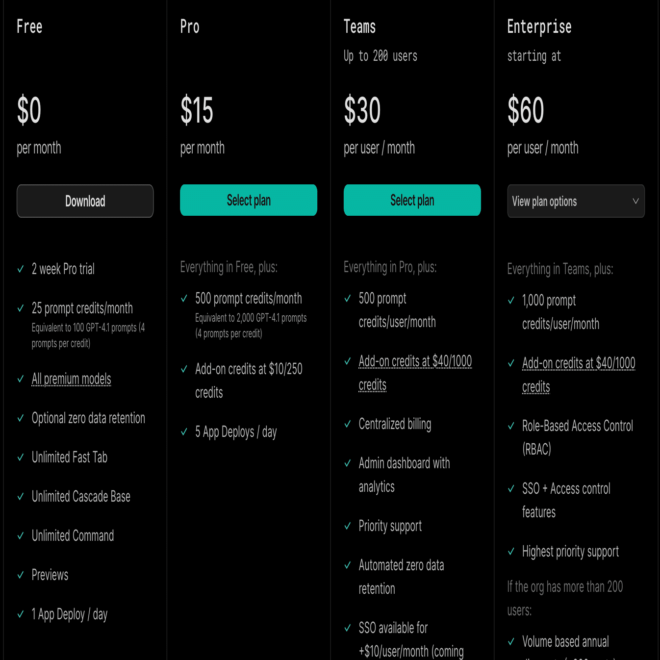 ・月に25プロンプトクレジット (GPT-4.1プロンプト100回分相当)
