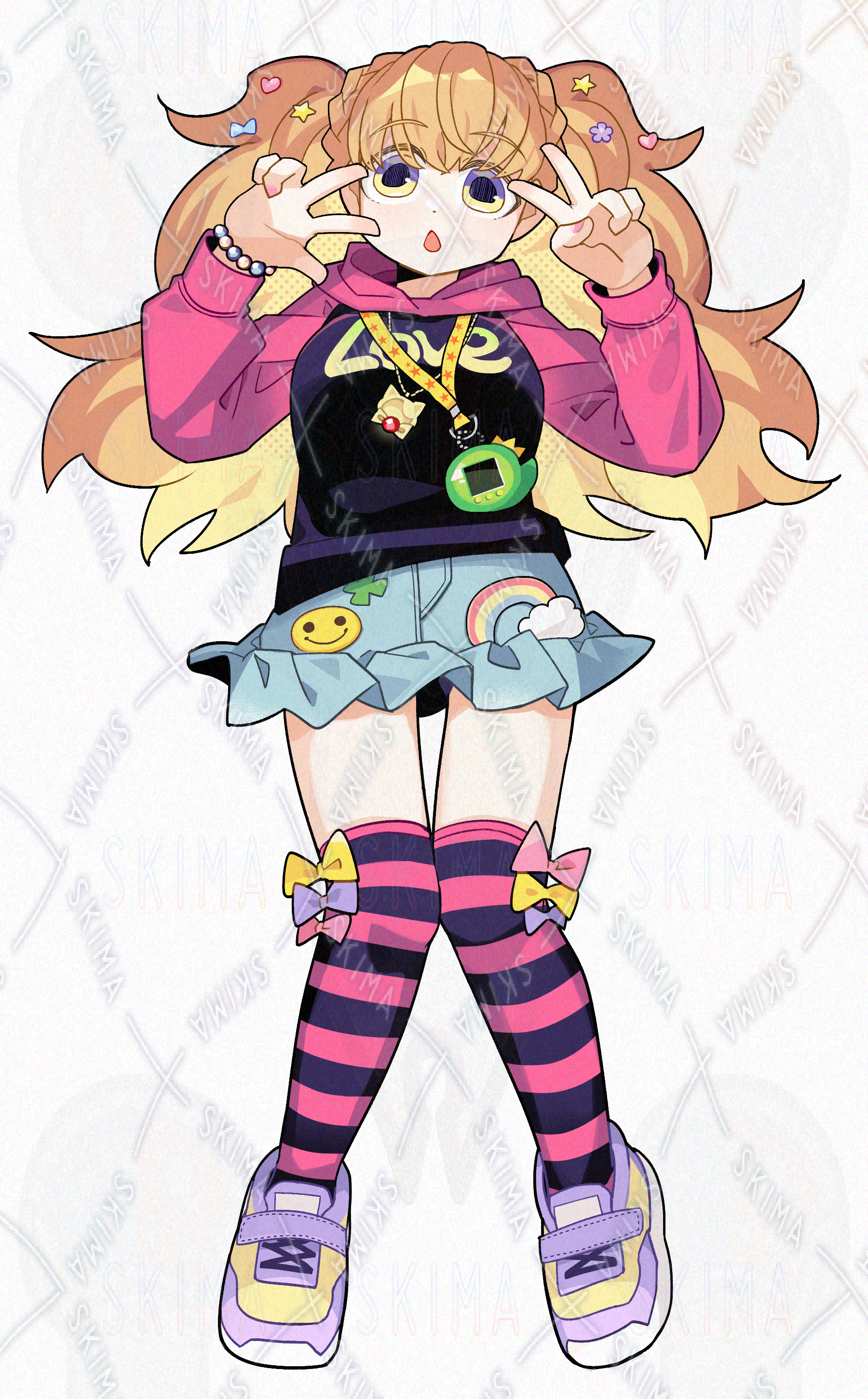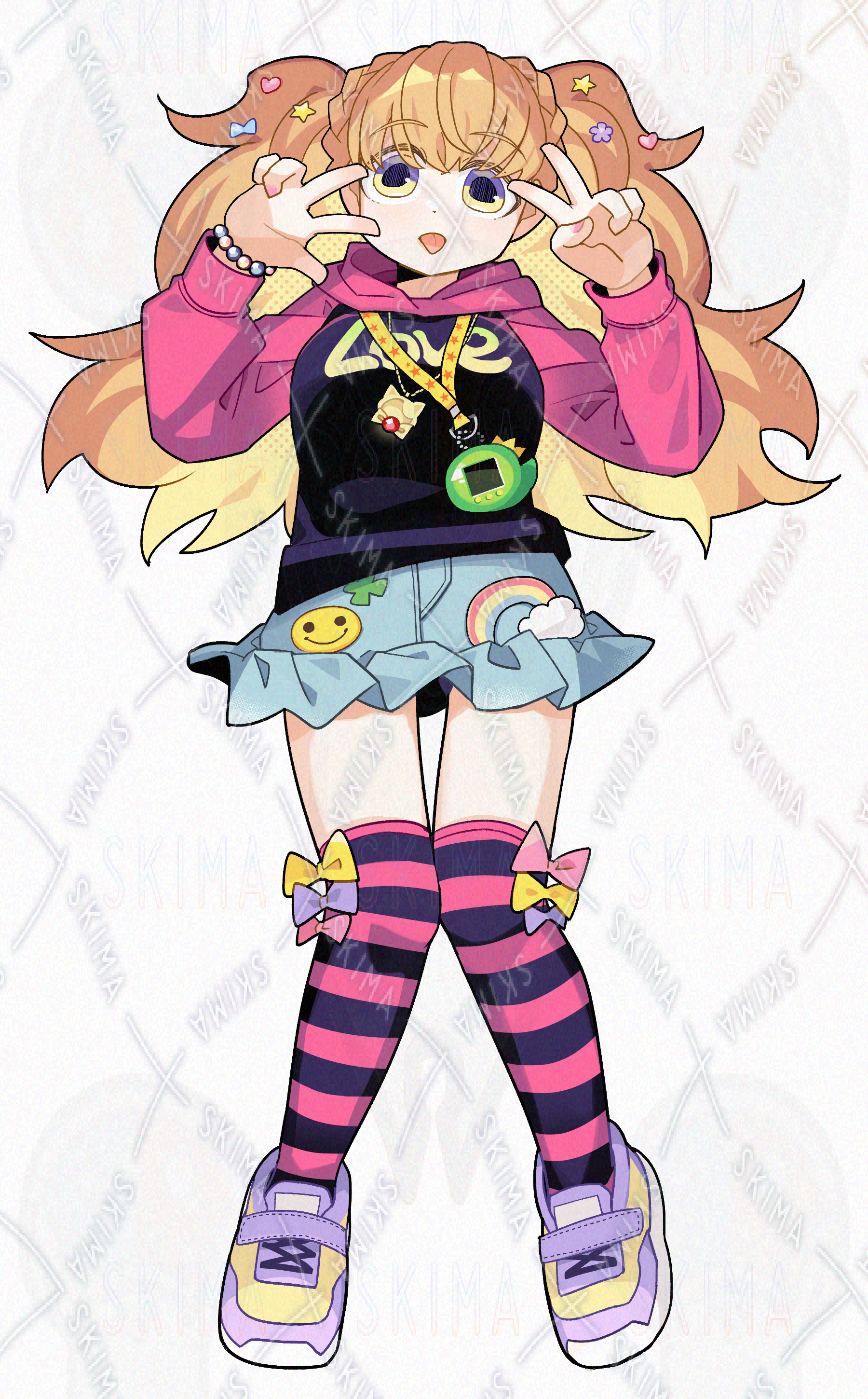 平成女児風の服を着た、ツインテールの女の子キャラクターです。