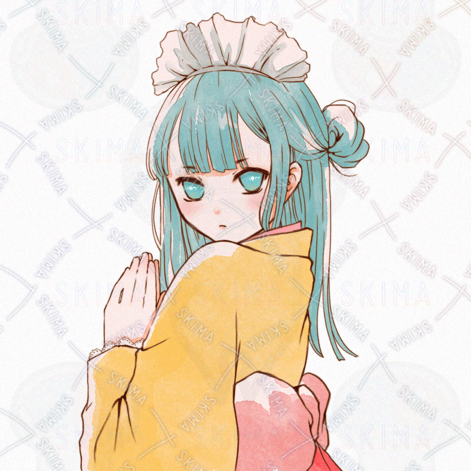 検索用:和モダン, 和服, 着物, メイド, カフェ, 制服, 水彩, 鉛筆, アナログ, レトロ, 手描き