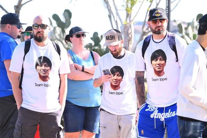 突如エンゼルスファンの中に現れたチーム水原一平、実は取り立て屋だったのでは疑惑が出ていて震えた。そう言われてから見てみると3人ともイカつすぎるんだよな…… pic.twitter.com/YRx9uM9WGD