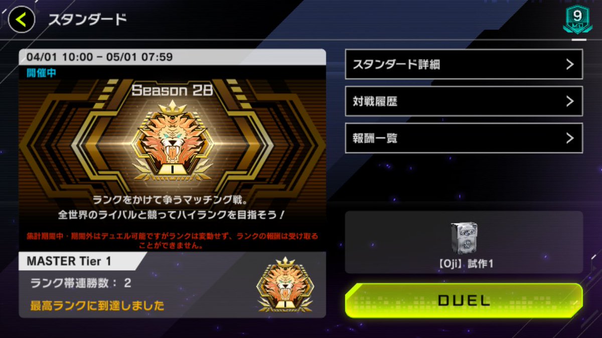 ヴァリアンツでマスター1! 2で無限に沼ってたけどギリ降格なしで耐えた。 pic.twitter.com/hCsl2HvhIY