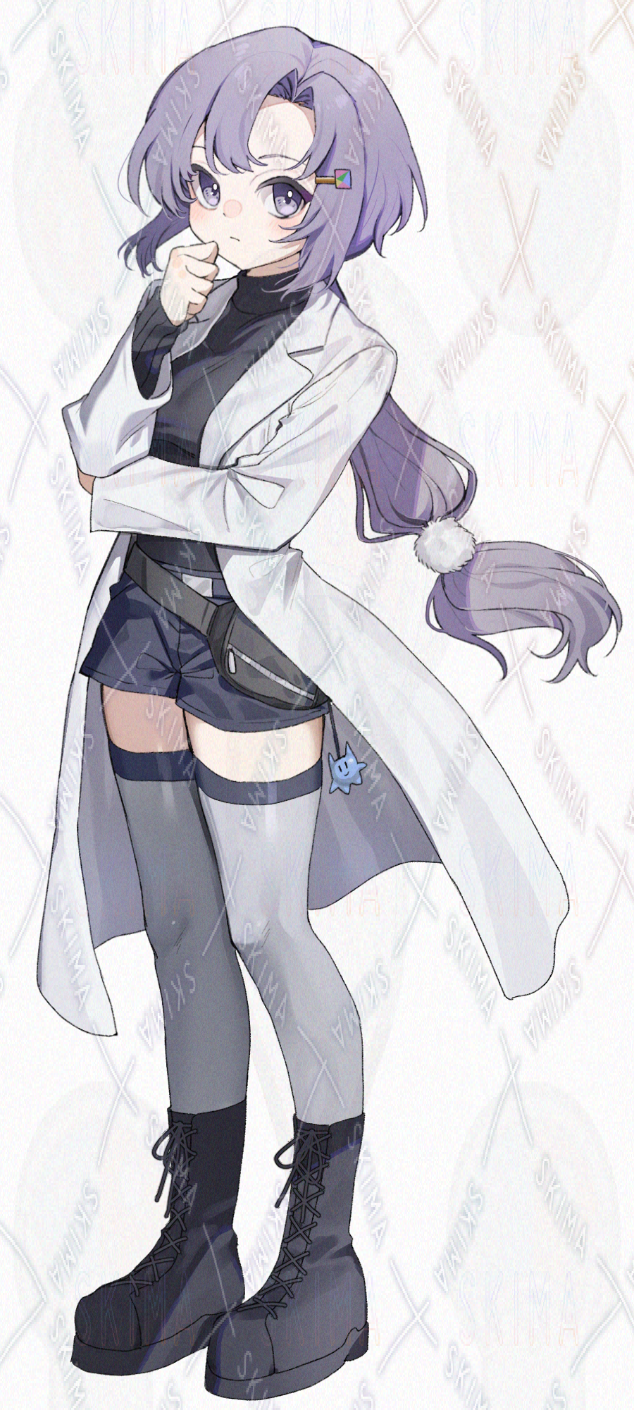 紫髪、クールな雰囲気、白衣を着た研究者風の女の子です。キャラ設定はご自由に。