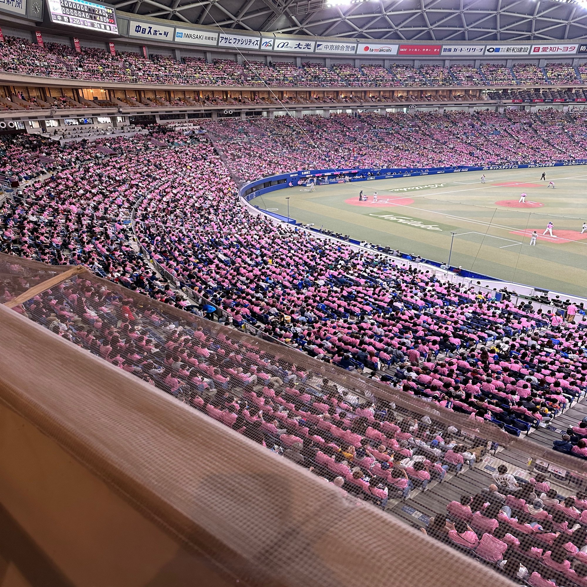 試合はと言うと、満員で、阪神戦であったが、ドラゴンズの現在の勢いも借りたのかドラゴンズファンが球場のほとんどを占めていたのが印象的であった。特にピンクのユニフォームを配られ、阪神ファンもそのユニフォームを着た人もゼロではないだろうし、たくさんのファンがそれを着用していたからそう感じた部分も大きかったのかもしれない。
