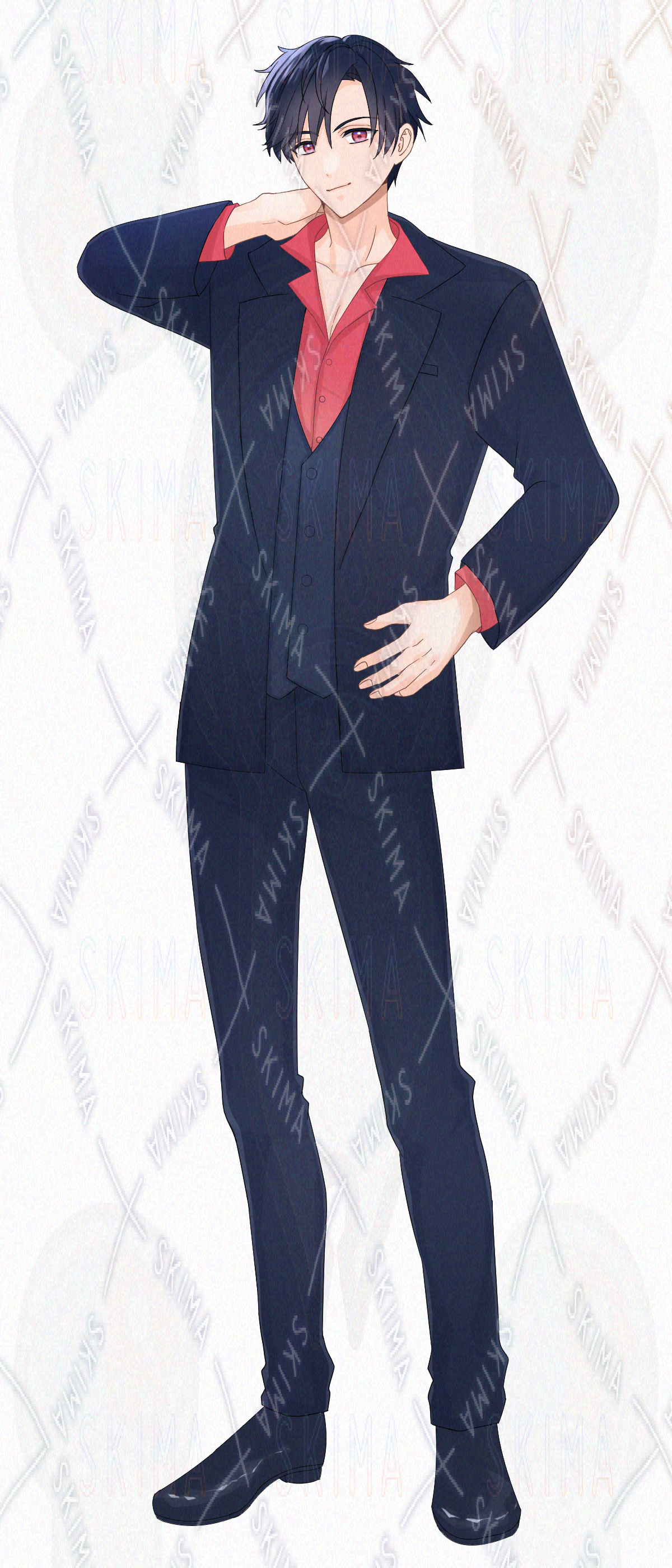 立ち絵、表情差分、男性、スーツ、赤シャツ、黒髪