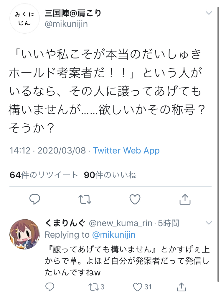 本人が苦し紛れに使い始めても、起源はお前なの草www