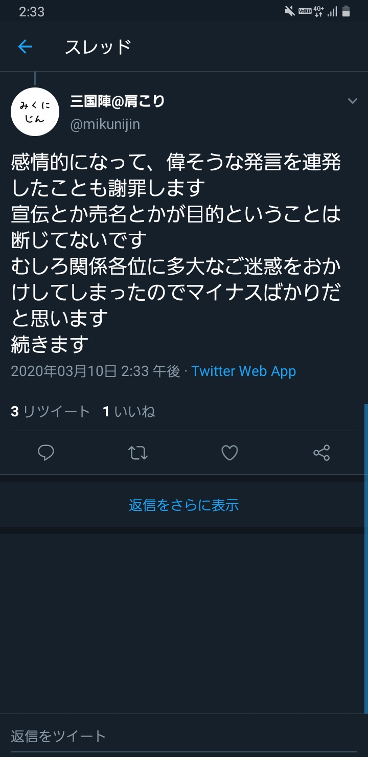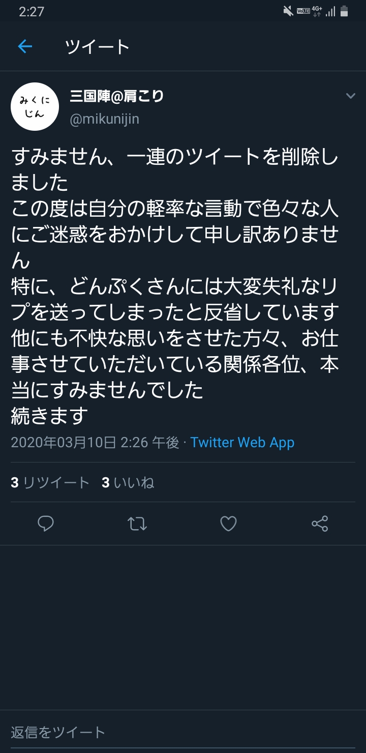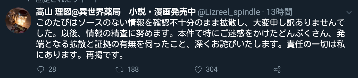 他の方が親切じゃ無いにしろ謝るべきとこ教えてくれてるんだから誤情報の拡散も含めて初手の謝罪文でこれ以上謝りようが無いほどポイント押さえて謝っとけば良かったと思うんだよね。