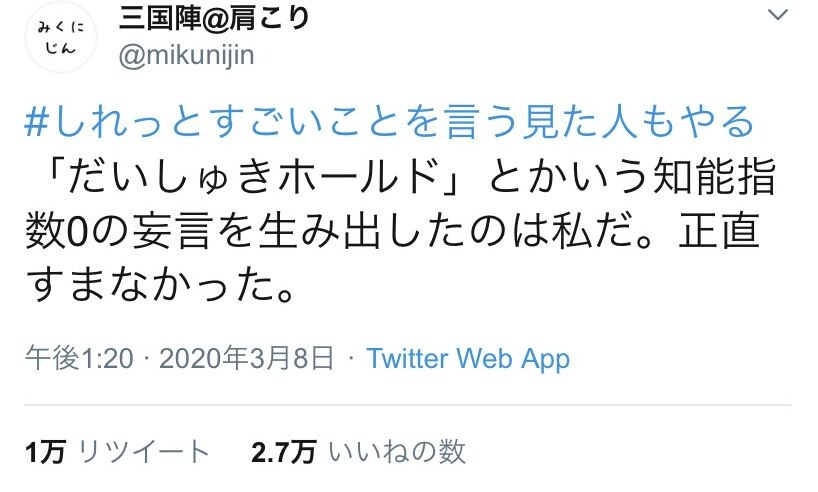 だいしゅきホールドって名前を考えた三国様へのヨイショをリツイートしまくってるわ