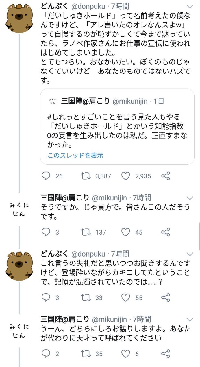 ・ツイッタラーどんぷくが異議申し立て。言いたくなかったけど本当の命名者は自分だと主張。