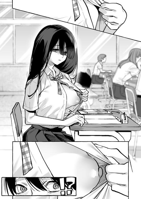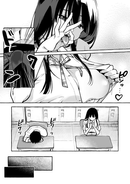 【エロ漫画】えっ!? 隣の席のクールで美人な巨乳JKが授業中にボクにおっぱいを見せつけてきたー!!
