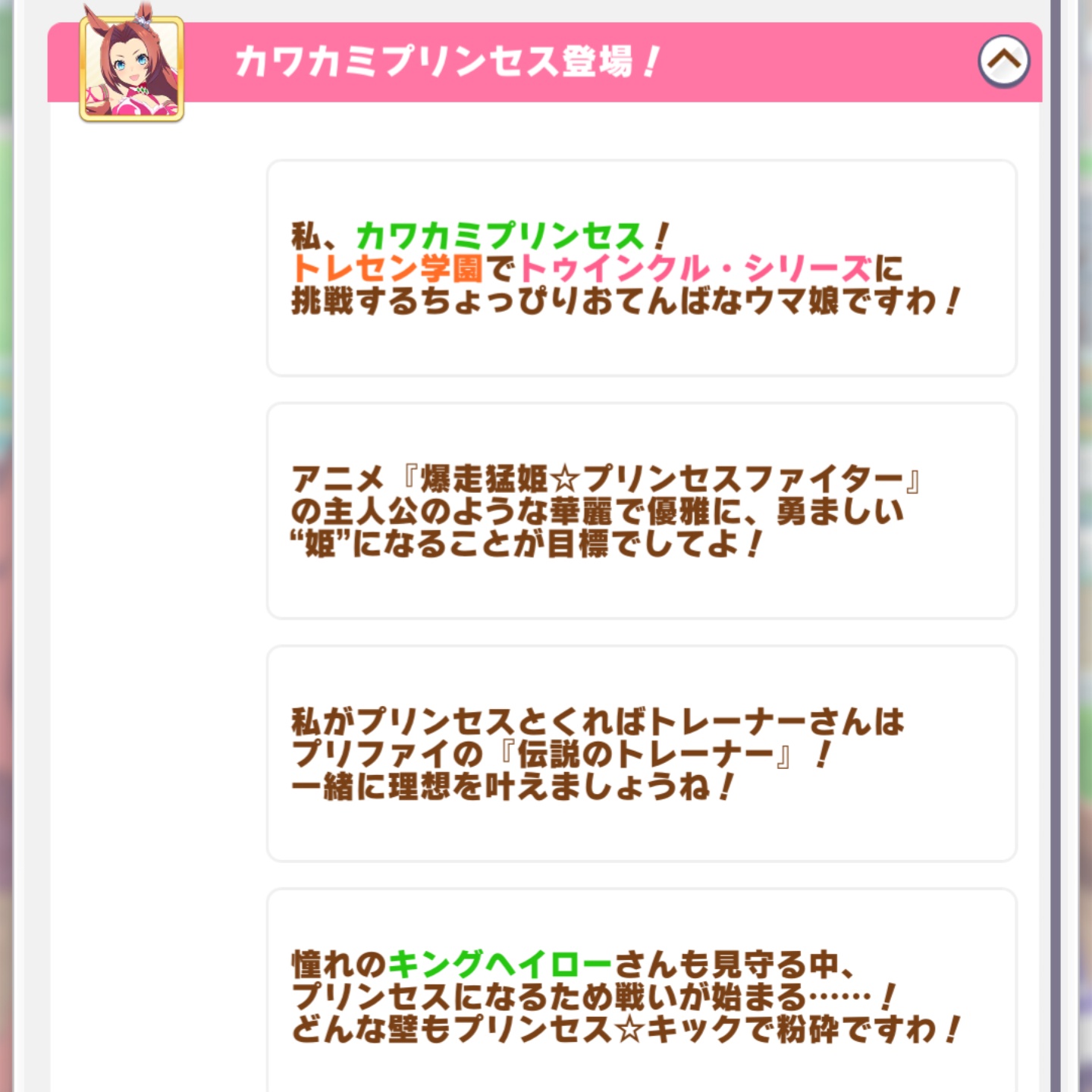 育成前:カワカミキター!きっとパワフルでギャグ全開なんだろうな!