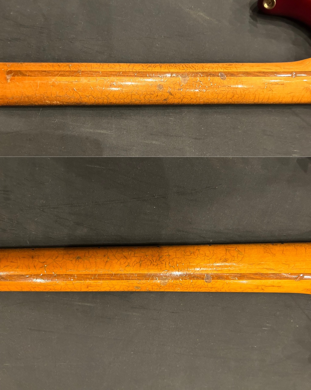 ネック裏の塗装にひび割れがかなりあります。