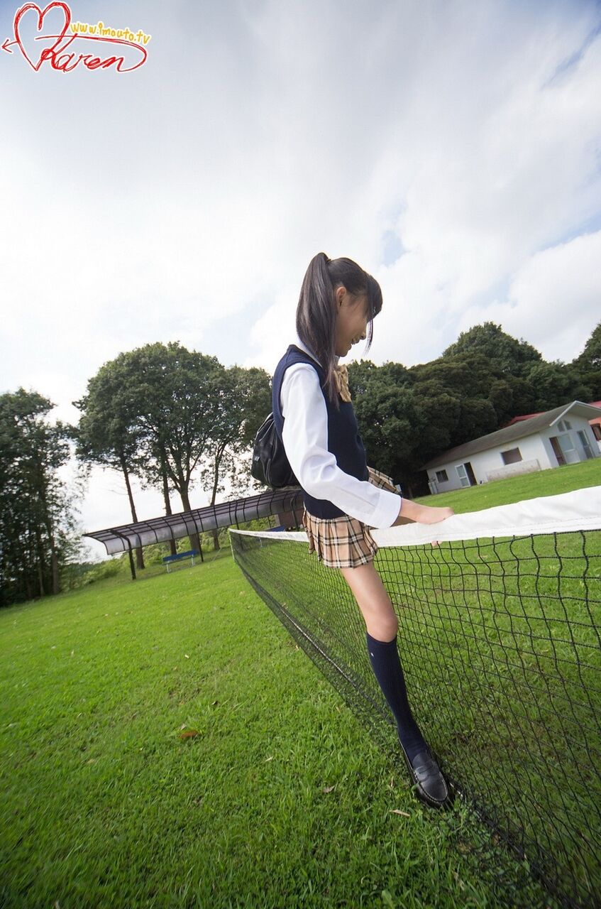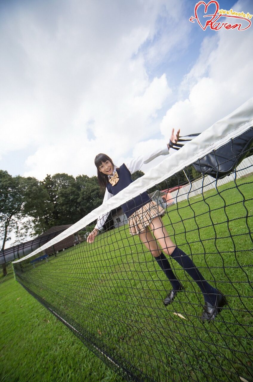 芝生のコートのネットにお◯◯こを擦りつけるJC 西野花恋13